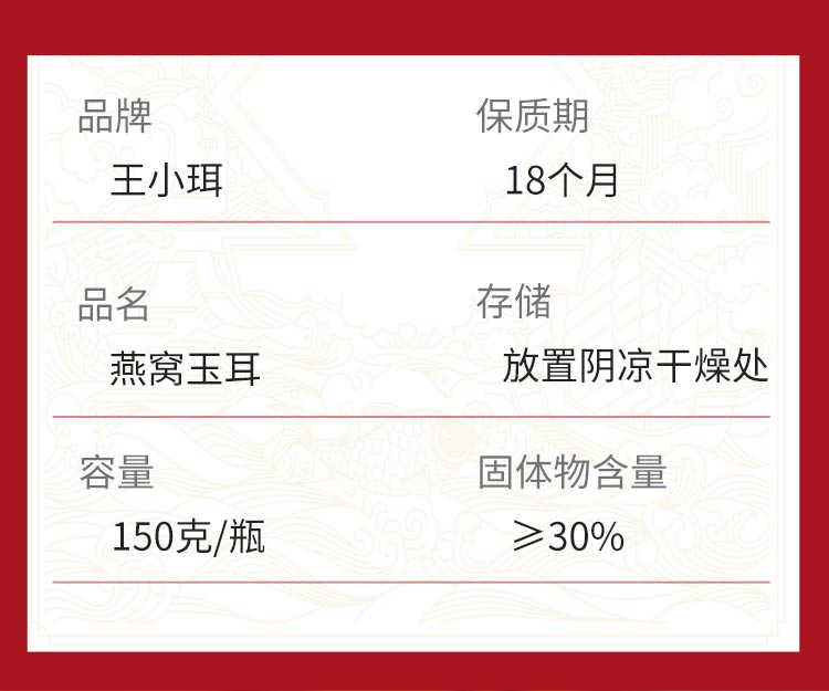 【产品名称】王小珥燕窝玉耳羹