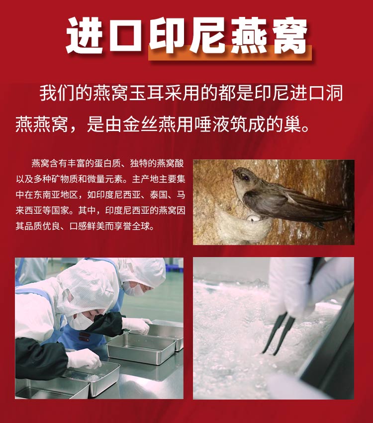 优选印尼进口,98%以上洁净度燕窝