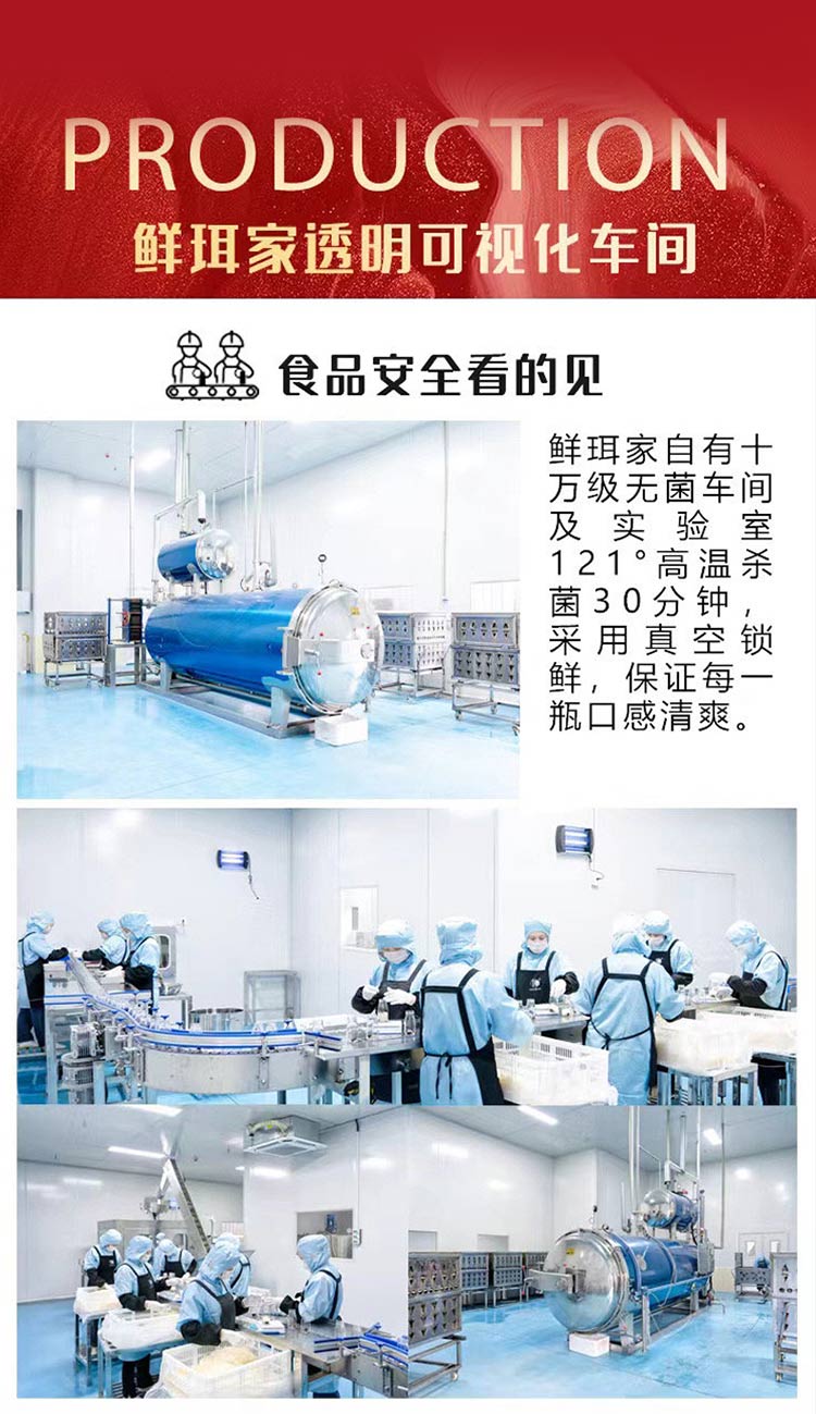 经过30分钟,121度高温杀菌真空锁鲜工艺,只为家人吃的安心。