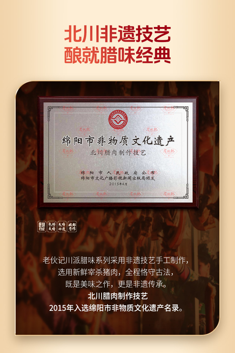 老伙记是一家专注从事非遗传统技艺(手工美食+工艺美术)产品开发、品牌营销和电商示范县、公共品牌建设运营的现代创新集团企业。 老伙记以弘扬中华文明和巴蜀文化为使命,振兴非物质文化遗产为己任。老伙记坚持“买卖最好保护,消费最佳传承,市场传承手艺,渠道检验产品”的企业观点。坚持“传承非遗技艺、弘扬匠心精神、谨遵古法匠作”的产品精神。老伙记是成都市非物质文化遗产品牌促进会创立单位、四川省非物质文化遗产保护协会理事单位、四川省传统文化促进会副会长单位、成都传统文化保护协会副会长单位。 老伙记先后成功打造了“成都手作”“百味巴蜀”“匠心老伙记”等品牌系列:军屯锅魁、钵钵鸡、黄金松花皮蛋、川派咸鸭蛋、川派盐皮蛋、豆笋、梨膏、粽子、月饼、腊味、辣椒酱、调味料”等100余个非遗美食产品和蜀锦、蜀绣、成都银饰、成都漆器、瓷胎竹编、周光兴菜刀等100余个非遗工艺产品;明月雷笋、遂宁鲜藕、蓬溪仙桃、曹家贡梨、蒙顶山猕猴桃、资中血橙等近100余个三品一标类生鲜农产品。
