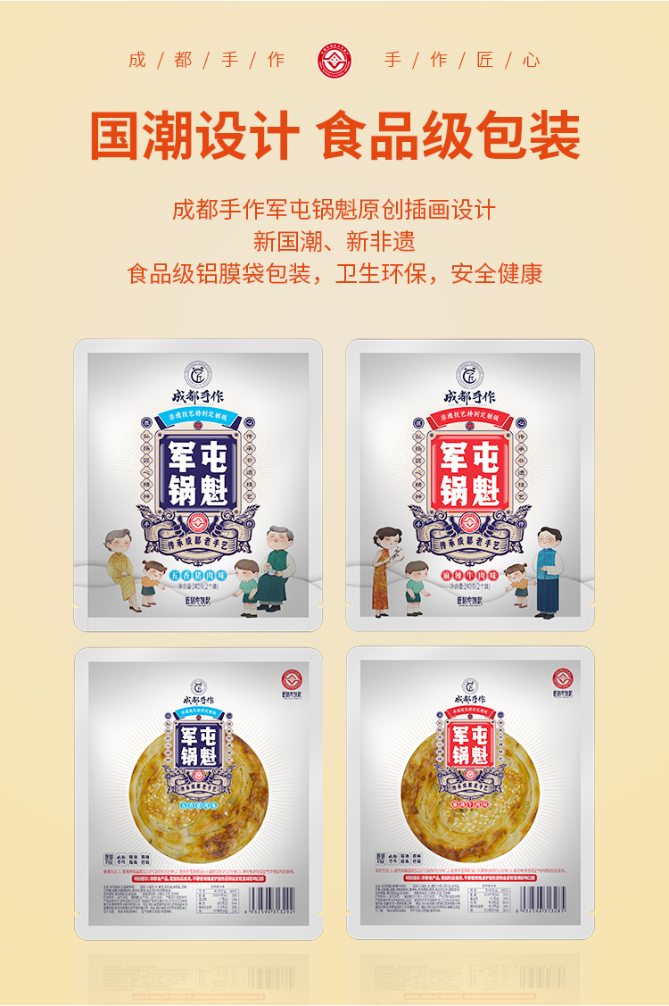 成都手作军屯锅魁全年发全国,是先冷冻再发货,采用隔热保温泡沫箱+冰袋运输,独立包装脱氧剂防霉保鲜,运输过程中会变软属于正常,不影响食用。